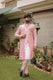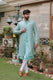 Dusty green all over thread and sequence embroidered sherwani with matching silk kurta and cotton lycra pant.