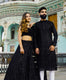 Mirror work couple set in light shade including men's kurta and women's lehenga set with a stitched blouse and georgette dupatta.